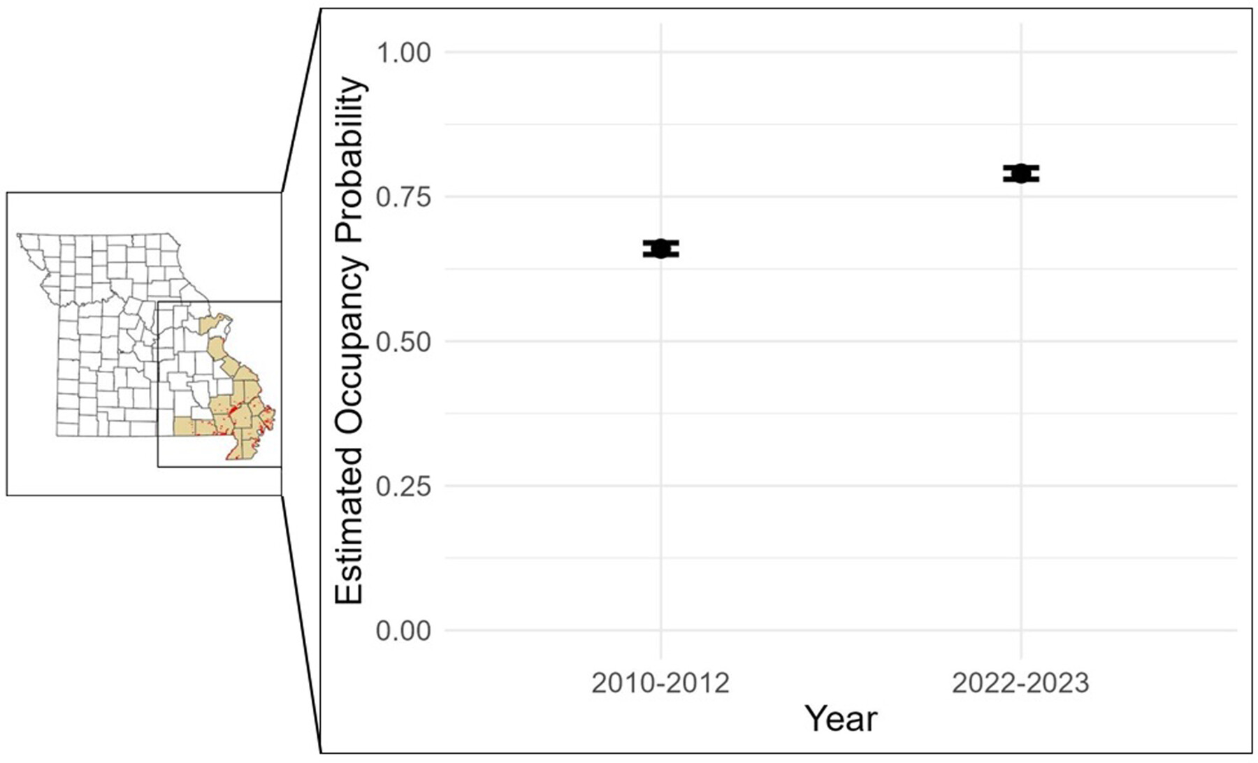 A decade-long comparison shows rising occupancy, expanded range and higher detection. Larger, connected bottomland hardwood habitats boosted persistence, while isolation hurt it. After decades of decline, the species is rebounding.